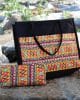 Whether you're attending a formal event or spending a casual evening out, experience sophisticated style and convenience with our cotton silk handbag and colour coordinated wallet set. The elegant handbag features a spacious main compartment and an inner pocket. The sleek wallet has slots and pockets for cards, cash and other essentials.