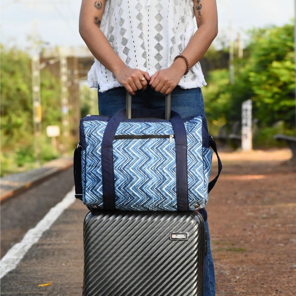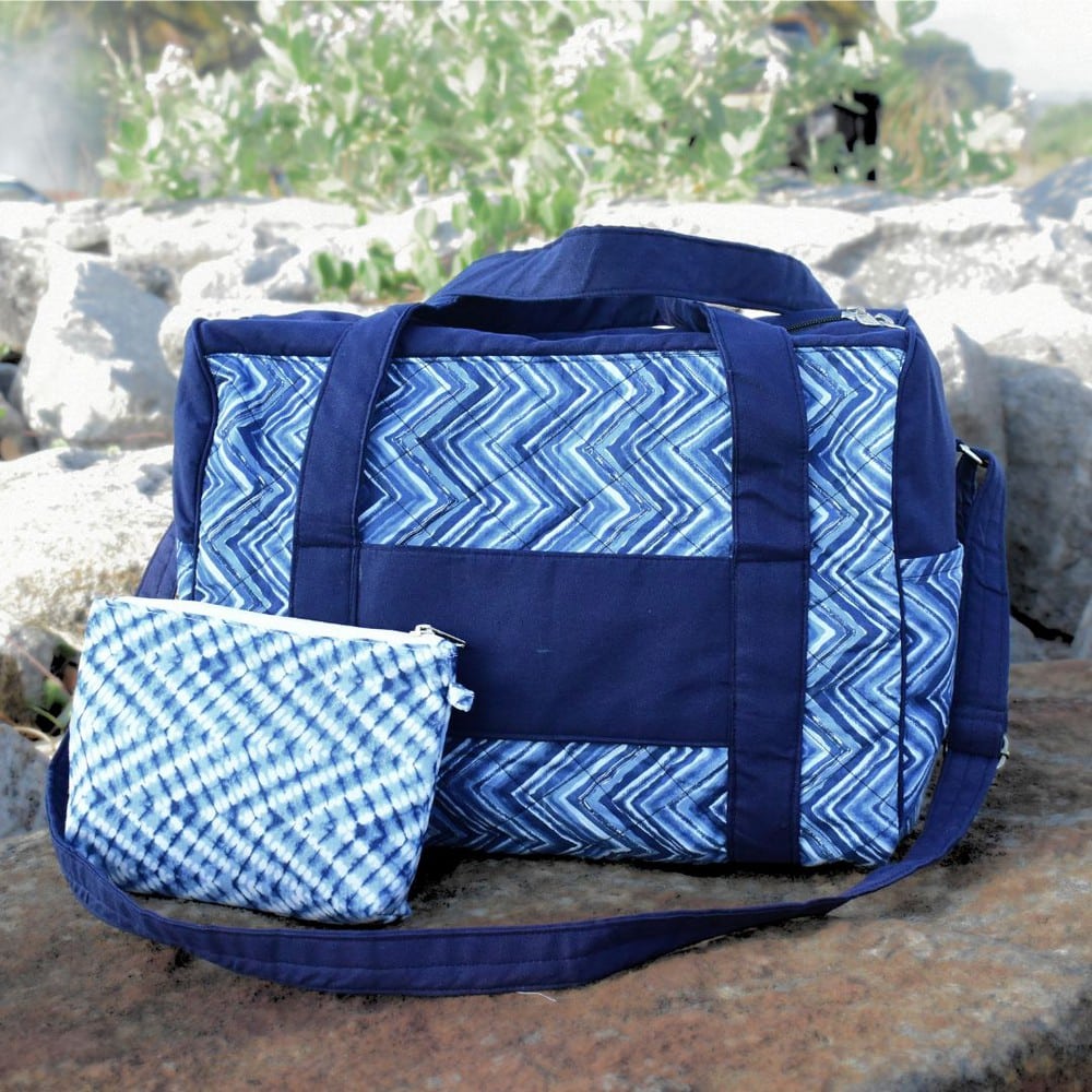 Travel light and easy with this thoughtfully designed duffel bag and matching pouch set. Made from cotton with a lovely print and subtle quilted detailing, the bag includes a side strap to slip over a trolley handle. Ideal for quick getaways or short work trips, it holds your essentials without compromising on charm or practicality.