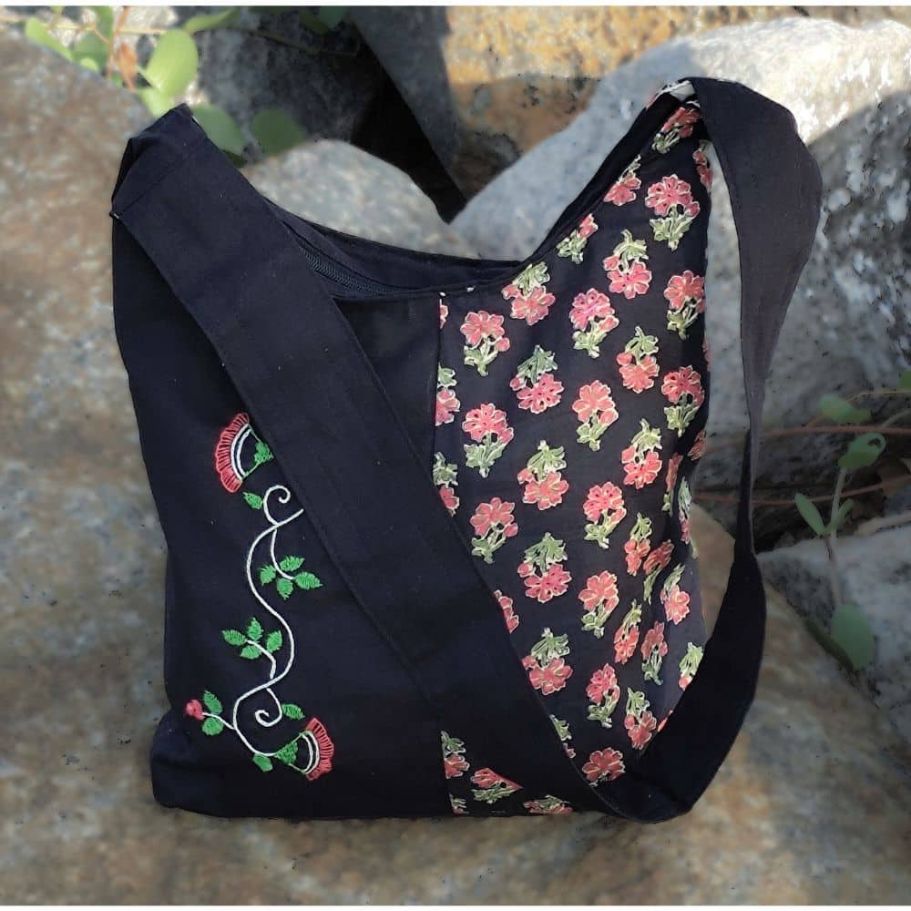The Jhola is a timeless Indian essential. This eco-friendly cotton bag, featuring hand-embroidered motifs inspired by Yin-Yang, is perfect for everyday use. Available in three colours, it's both stylish and sustainable. Every purchase supports rural women.