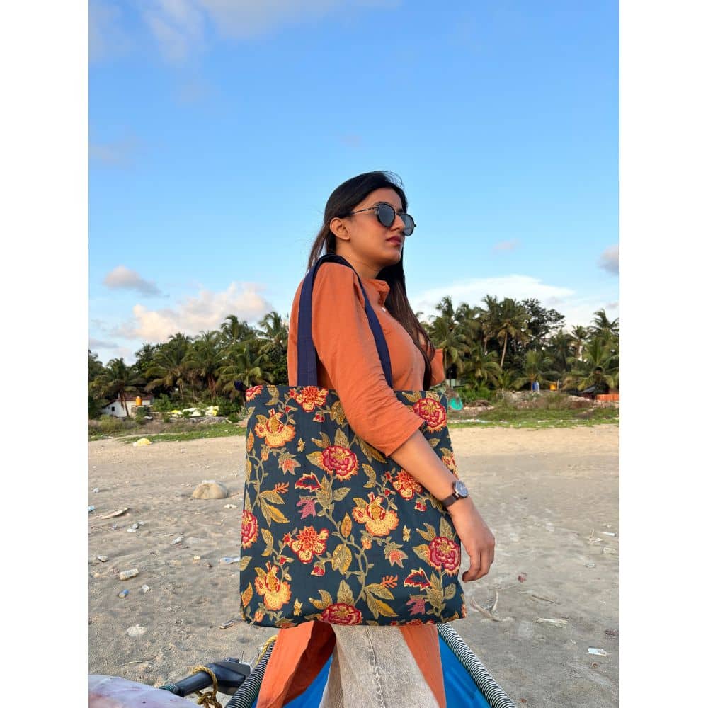 A roomy Cotton Printed Tote with an inner pocket- perfect for shoppers, or just about anyone, anywhere.