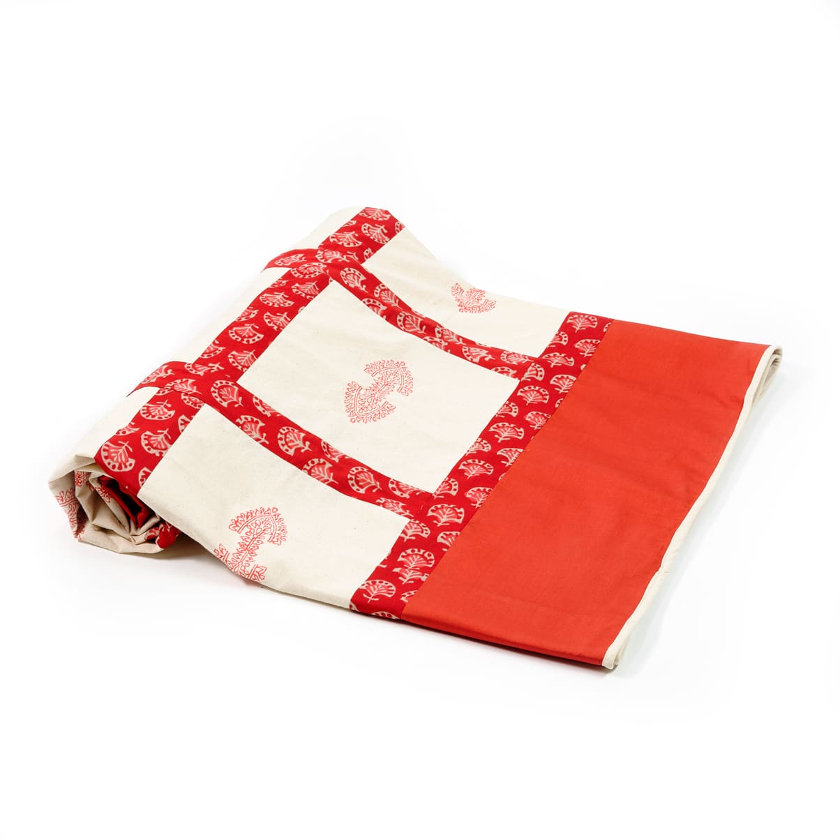 Indulge in the beauty of handcrafted artistry with our exclusive handblock printed and patchwork single bedcover. It is meticulously crafted using traditional techniques, resulting in intricate outcomes and vibrant colours. The design adds a unique element to your bedroom, while the soft and breathable cotton ensures a comfortable night's sleep.